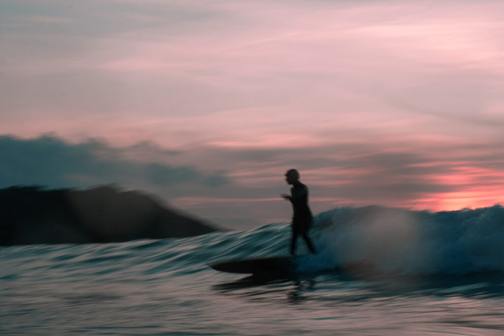 Je n’ai pas de réglages précis en tête, ça dépend de ce que je veux faire, mais j’aime bien les choses abstraites. Si je veux faire une photo avec du mouvement, donner un aspect filaire je serai en pause longue. J’aime beaucoup les photos qui rendent compte du mouvement. J’aime aussi faire de la photo de surf qui, au premier regard, ne fasse justement pas photo de surf, sur laquelle on doit revenir… ou bien des photos qui font penser à une peinture. Je n’ai pas de réglages type, je fais selon la météo, les vagues, la lumière, mes envies… J’aime bien laisser de la place au spontané, sans chercher à avoir le contrôle sur les éléments. Je fais bien sûr les réglages de base qui font que la bonne sera bonne, mais je ne me concentre pas sur ça réellement, c’est assez instinctif.