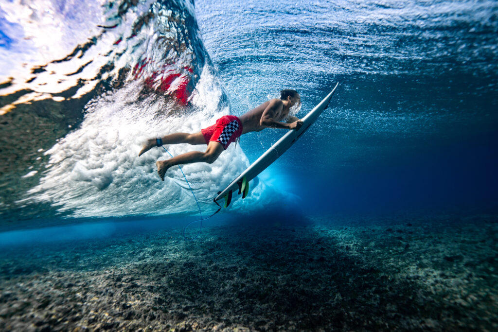 Acheter du matériel photo et vidéo, préparer des voyages mêlant surf et shooting, tout cela coûte cher et il tient à se lancer le plus tôt possible. « Après la poissonnerie, je faisais un peu de tout, notamment des concerts, mais il y avait de longues périodes pendant lesquelles je ne faisais rien et ne gagnais rien. » Heureusement pour Paul, nous sommes en octobre 2019, le Quiksilver Pro France d’Hossegor était toujours d’actualité. Tous ces pros à l’eau, l’occasion est trop belle. « C’est là que j’ai shooté mes premières photos et vidéos de surf. C’est aussi là que j’ai vu un mec faire de la photo aqua pour la première fois. Qu’il y ait des personnes à l’eau pour prendre des photos ne m’avait jamais traversé l’esprit. Je me suis dit : j’aime la photo, j’aime le surf, j’ai nagé douze années en compétition, elles vont peut-être enfin me servir », explique-il.