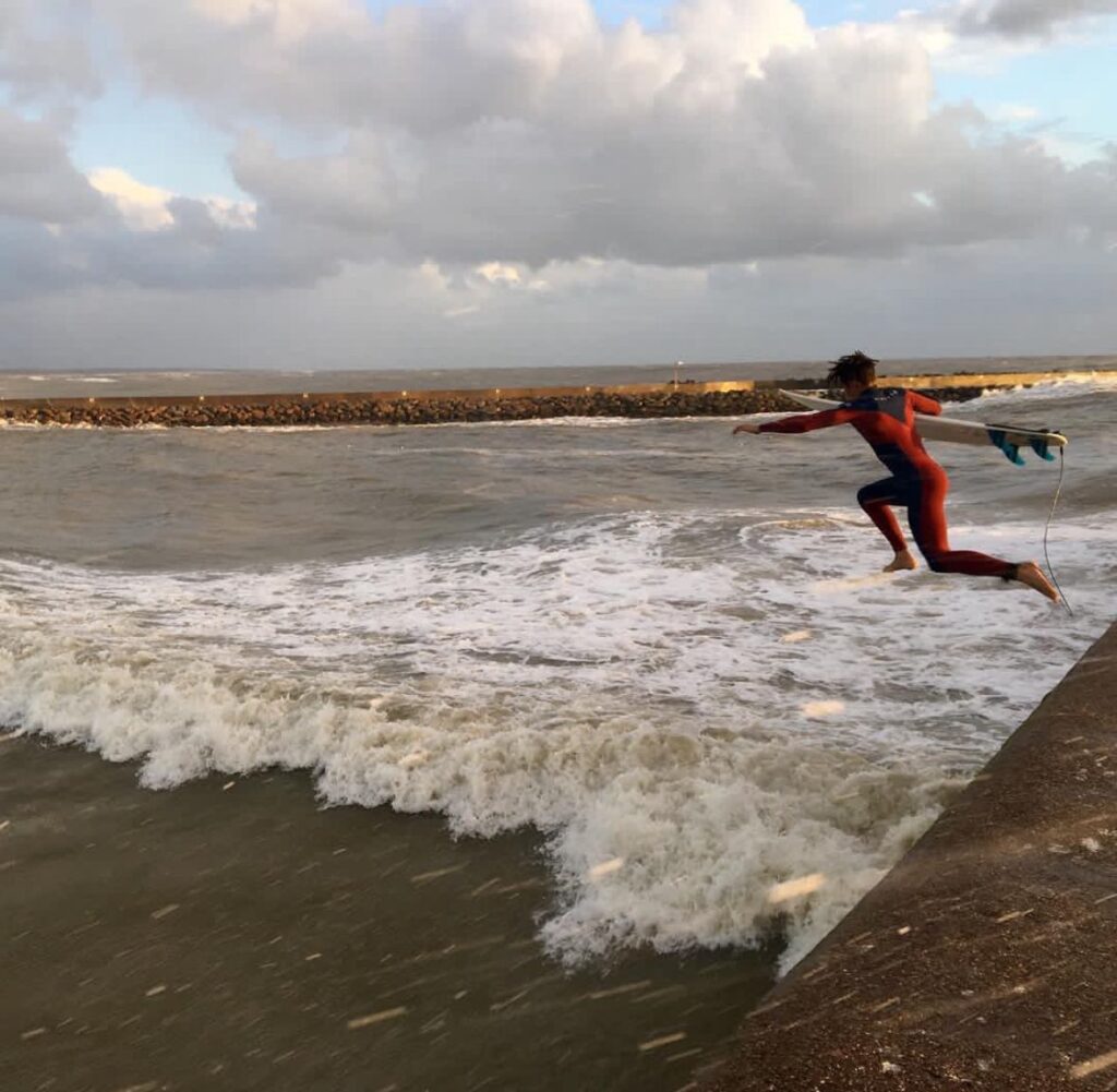 Théo Christine – J’ai commencé à prendre des vagues en body en Martinique et à essayer de me mettre debout. Mais c’est en Vendée au collège que j’ai vraiment commencé, encouragé par mon père.
