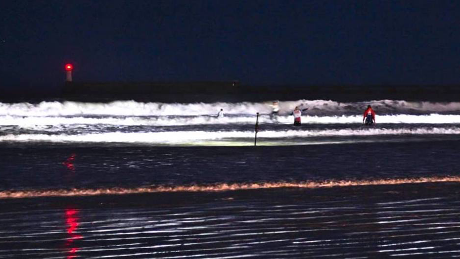 Si les aventuriers de Lost in the Swell les avaient utilisé en frontale pour une session nocturne à Mundaka, l’école de surf SurfZone a redoublé d’ingéniosité pour éclairer la grande plage des Sables-d’Olonne.