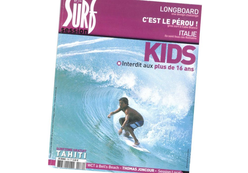 Une décennie plus tard, l’intéressé revient sur cette couverture et la photo shootée par Tim McKenna : “La photo a été prise sur le spot de Dbah, sur la Gold Coast. Je devais avoir environ 14 ans. Je me rappelle que les vagues étaient petites mais vraiment parfaites et l’eau turquoise. Je m’étais mis à l’eau avec Julian Wilson, à cette époque on surfait beaucoup ensemble. Je me souviens aussi de cette planche Mark Phipps avec le carbone au milieu – j’avais bien copié Kelly d’ailleurs – c’était la mode… J’avais été super heureux de faire la couverture de cette édition spéciale Kids.«
