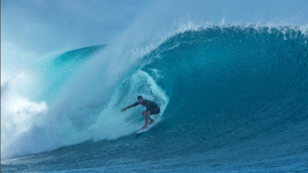 L’acteur australien, révélé suite à son rôle dans le film « Thor », possède un très bon répertoire de manoeuvres frontside, et n’hésite pas à charger dos à la vague, comme le prouve ce barrel scoré lors d’un trip.