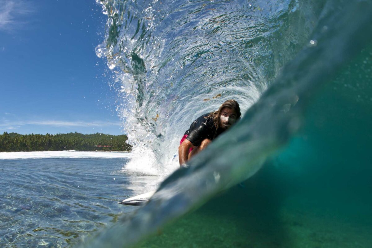 Nous sommes partis en exploration et avons trouvé cette vague. Nous sommes restés seuls à lʼeau pendant deux jours dans ce petit paradis. Les Philippines sont un véritable studio aquatique pour un photographe et pouvoir shooter en continu avec un rider sans se soucier du monde autour de soi est un avantage certain. Damien a enchainé les perles et les dernières semaines du trip ont été riches en images.