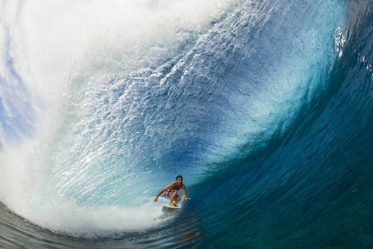 Alain est parti sur une vague bien à l’intérieur, j’étais bien calé. J’ai senti la vague m’aspirer et l’eau se retirer du récif : généralement quand on sent ça, c’est qu’on est bien dedans, juste au bon endroit