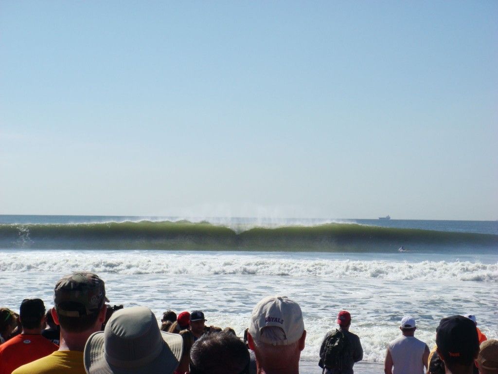 Après le jargon skate, les maths : le speaker explique “Kelly a besoin d’un combo de 17.60 points… donc si il obtient une note parfaite (10), alors il aura besoin d’un autre 7.60 points” et la moitié du public répond “oh mec, t’es bon en maths !”. C’était ça l’ambiance, tout le monde appréciait le moment, riait, reconnaissant pour le bon surf proposé, peu importe d’où venaient les surfeurs. J’ai entendu beaucoup de discussions à propos du reste du Tour. Est-ce que quelqu’un peu m’expliquer pourquoi les Yankees, en parlant de la France, commencent toujours par “bonne bouffe, filles jolies” ? Par chance il n’y aura pas d’étape italienne, sinon ils commenceraient par les trucs genre pizza & mandoline.