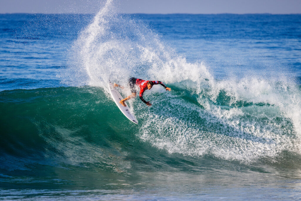 Sur une note plus positive, nous avons des gagnants chez les hommes ! À commencer par Jorgann Couzinet qui a fini aujourd’hui largement premier de son heat avec 15 de total. Le Réunionnais continue de surfer avec autorité comme il l’a fait sur les deux premières étapes en Australie. Il a éliminé au passage Samuel Pupo et Evan Geiselman. Marco Mignot est l’autre surfeur à avancer dans la compétition, ce dernier s’était lui aussi démarqué sur l’épreuve du Sydney Pro, où il réalisa la meilleure performance française.