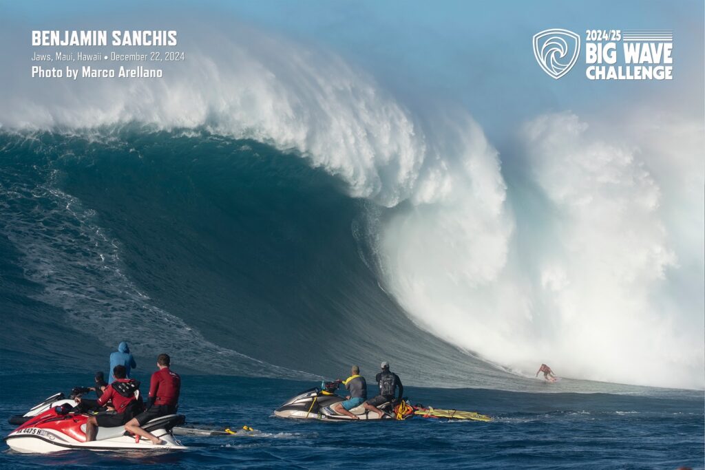 C’est le photographe hawaiien Fred Pompermayer qui a lancé le débat après avoir lui même photographié les deux vagues pourtant séparées de 4000 kilomètres. « C’est le plus gros swell que j’ai documenté au cour de ma longue carrière de chasseur de houles. J’ai shooté beaucoup de jours de gros, mais celui du 23 décembre 2024 était spécial. Jaws était énorme cet après-midi-là, l’océan était plein d’énergie avec des vagues de plus de 80 pieds« . explique t-il sur les réseaux sociaux.