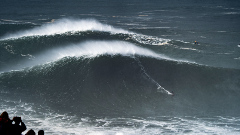 Toujours blessé (après un wipeout survenu à Jaws justement), Albee Layer a quant à lui profité du spectacle depuis la falaise.