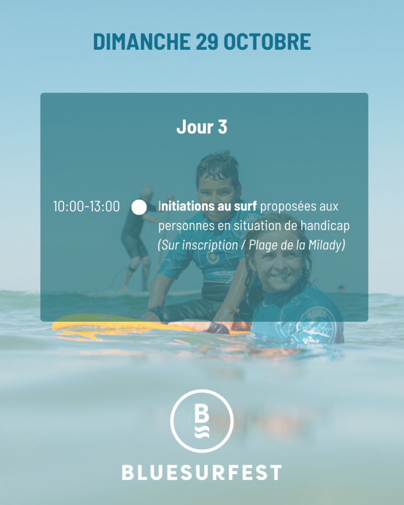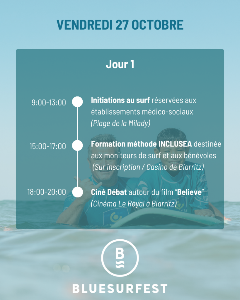 Tout comme les cinq autres Blue Surf Festivals, celui de Biarritz comprendra un large éventail d’activités destinées à renforcer l’esprit de communauté au niveau régional et national et à sensibiliser au rôle social et environnemental du surf. Répartis de la plage de la Milady au Casino de Biarritz, des activités sportives, des événements culturels, et des conférences seront ainsi proposés tout au long de ces trois jours. Il s’agira aussi de promouvoir et de développer les travaux menés par le réseau européen Inclusea depuis 2021. Un réseau dont l’association nationale Handi Surf est un membre actif et qui a créé une boîte à outils destinée au développement de l’enseignement du surf adapté pour les personnes en situation de handicap moteur et/ou sensoriel, en Europe et au-delà.
