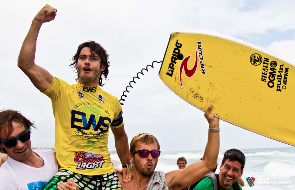Il ne reste alors plus que quelques secondes et PLC a besoin d’un 7,81pts. Il démarre une droite et balance deux backflips sur la même vague avant de claimer, debout au bord de l’eau… le public hurle. la corne retentit ! Le score se fait attendre : 9,4… PLC vient de remporter sur le fil son premier contest de la saison et se relance sérieusement pour le titre mondial à quelques semaines de la dernière étape Canarienne du Tour 2011 (2nd à 300 pts du leader Jeff Hubbard). Cocorico ! Une victoire d’autant plus méritée que PLC passe le cut de justesse et se retrouve face au leader du classement, Jeff Hubbard en course pour son troisième titre mondial. Exit Jeff Hubbard. Idem pour les brésiliens Roberto Bruno et Uri Valadao, respectivement sortis en 1/4 et 1/2 finale. La suite, on la connaît et elle fait d’autant plus plaisir que PLC se retrouve aujourd’hui 2nd du classement GSS à seulement 300pts de Jeff Hubbard.