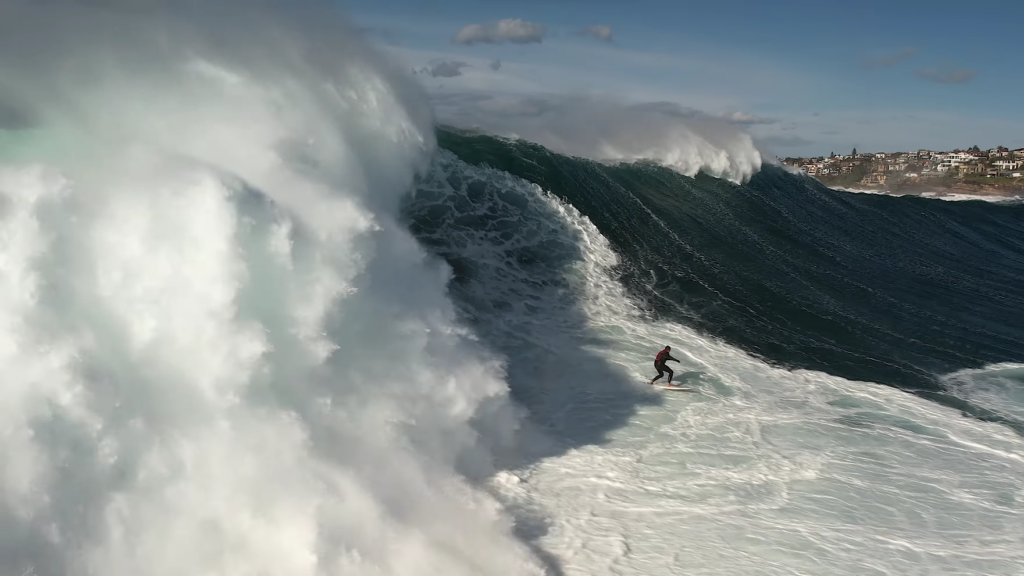 Le vidéaste et photographe australien Tim Bonython est spécialisé dans la traque des plus grosses sessions à travers le globe. Il est rentré chez lui depuis Tahiti, après avoir vu qu’un swell allait toucher la côte de la Nouvelle-Galles-du-Sud. Le pays est actuellement au cœur de l’automne, ce qui explique cette entrée de houle particulière. Wedding Cake, c’est le nom qui a été donné à cette vague que Tim qualifie de » Jaws de Sydney« . Il est vrai que la droite australienne ressemble à la célèbre vague hawaiienne, dans sa forme et parfois dans ses couleurs.