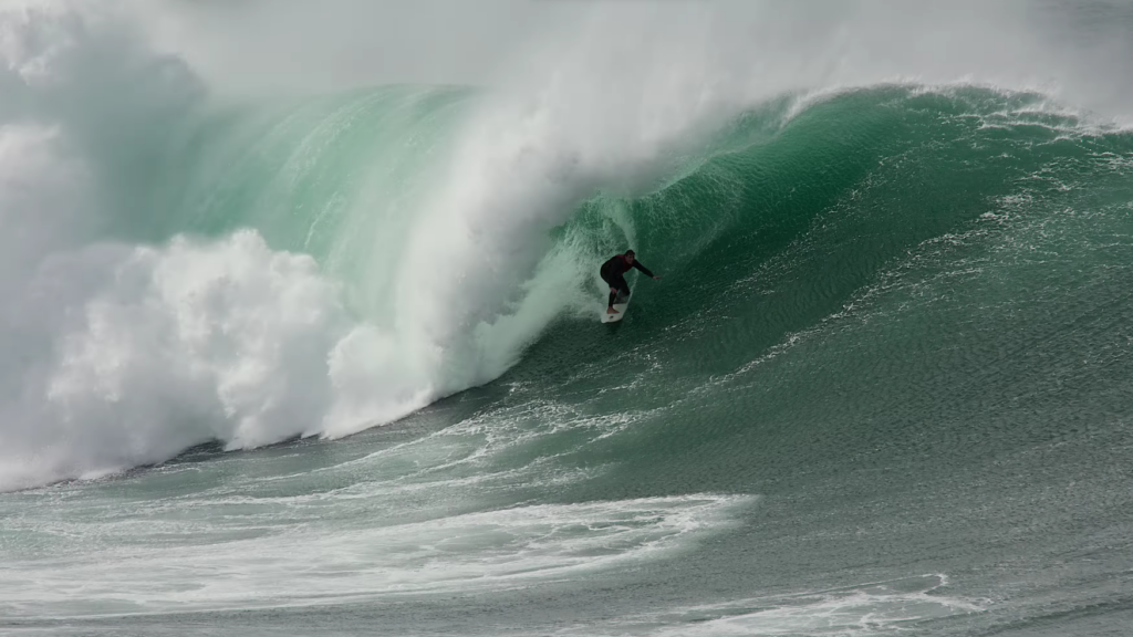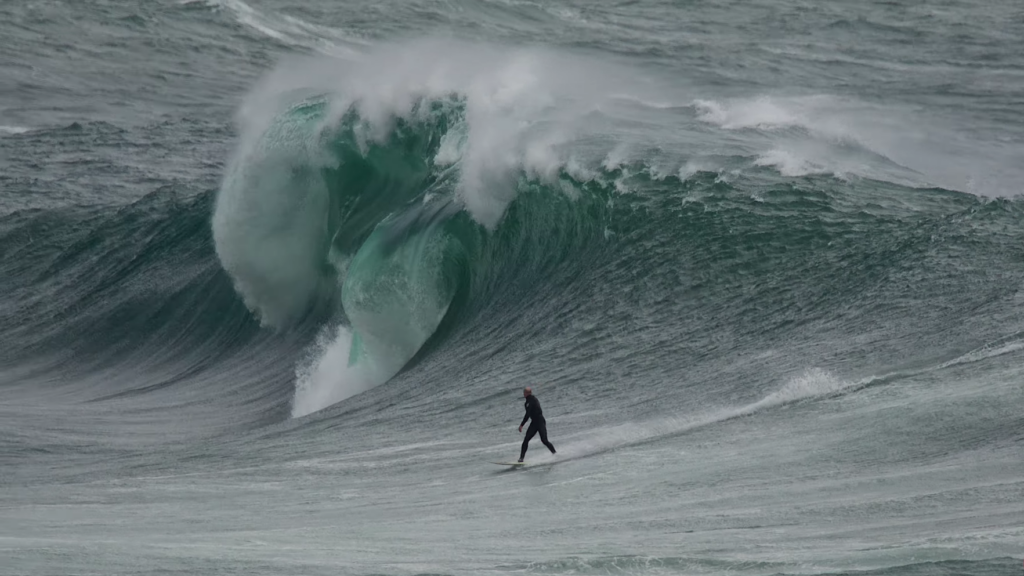 On le voit dans l’édit, la vague change radicalement de visage à mesure que les heures passent. « J’y ai été à la rame ce matin, mais j’ai senti que c’était trop gros » explique Max McGuigan. Certains foils se sont également mis à l’eau et ont réussi à prendre quelques bonnes vagues, bien que plus à l’extérieur. Les prises de vue en drone offrent une perspective différente et nous confirment que cette vague est bel et bien impressionnante.