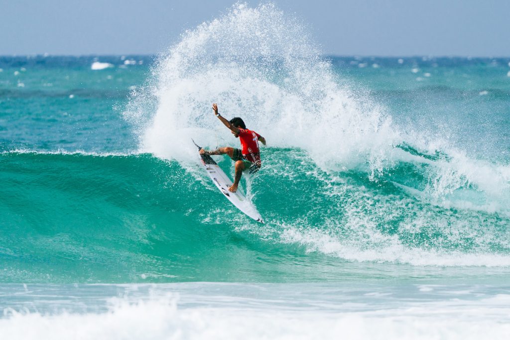 Obligée de performer pour garder sa place sur le CT, la Tahitienne a très bien débuté en dominant très largement Tyler Wright et Brisa Hennessy au premier tour. Opposée ensuite à Caroline Marks, surfeuse reconnue pour son surf backside, Vahine remporte ce duel de goofies en tapant encore plus haut que l’ex-championne du monde.