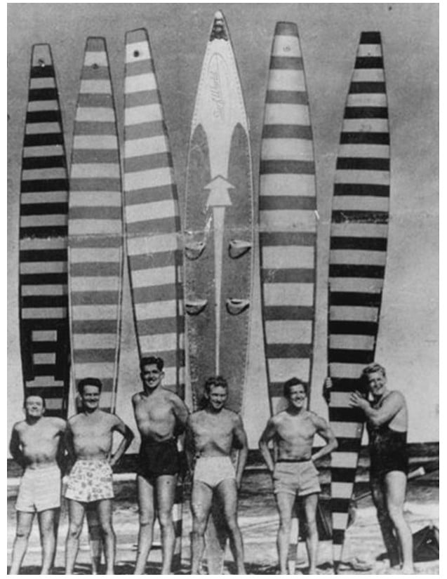 Le leash a aussi une place de choix. Ici on n’est pas dupe de ces industriels américains qui racontent avoir inventé le concept en 1970. On expose donc la photo de ce surfeur français (Georges Hennebutte) planche reliée à la cheville en 1965. Et le musée explique qu’à l’époque les surfeurs avaient déjà testé ceintures, cordes à linge, cordons de rideaux, colliers de chien, ou même chaussettes pour rester connectés à leur planches. On peut même voir des curiosités comme un leash rétractable, ou ce petit parachute qu’on pouvait jeter derrière la vague pour retenir sa planche le temps d’aller la récupérer…