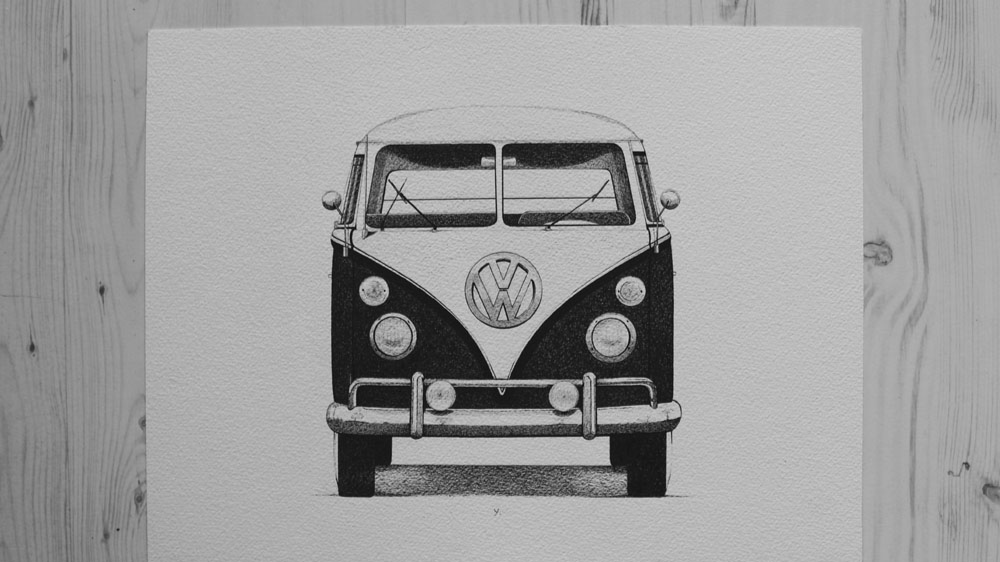 Ce qui anime l’artiste, c’est avant tout le surf et son environnement. Yann rate rarement sa session quotidienne, une autre façon pour lui d’aborder l’art et la créativité. « Le surf c’est comme mes dessins, ça parait simple, mais ça ne l’est pas du tout (rires) ». Une simplicité qui en effet se ressent dans son style : un noir et blanc basique mais puissant, un travail majoritaire au feutre à mine fine et au crayon gris pour un résultat très réaliste ; un regard appuyé sur les détails, les textures et les mouvements qui transforme un objet en véritable oeuvre d’art. Et à l’image du surf, c’est le travail et la passion qui sont au coeur de ses créations : 30 heures de travail pour un petit format, des centaines pour un dessin à l’échelle.