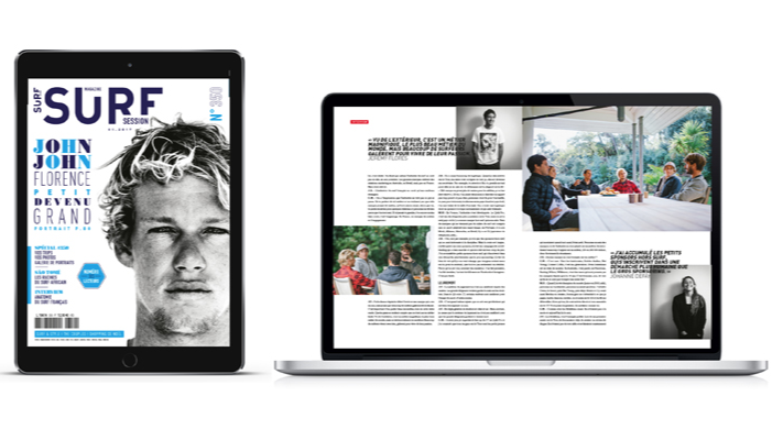 Découvrez donc chaque mois Surf Session en version numérique. Un contenu identique à celui de la version papier, disponible dès sa sortie en kiosque au prix de 3,99 euros (au lieu de 7,50 euros en format papier)