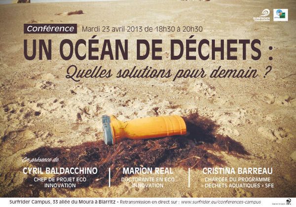 Dans le cadre de son programme « Campus », Surfrider Foundation Europe organise une conférence ouverte au public sur le thème « Un océan de déchets, quelles solutions pour demain ? », le mardi 23 avril de 18h30 à 20h30 à Biarritz .