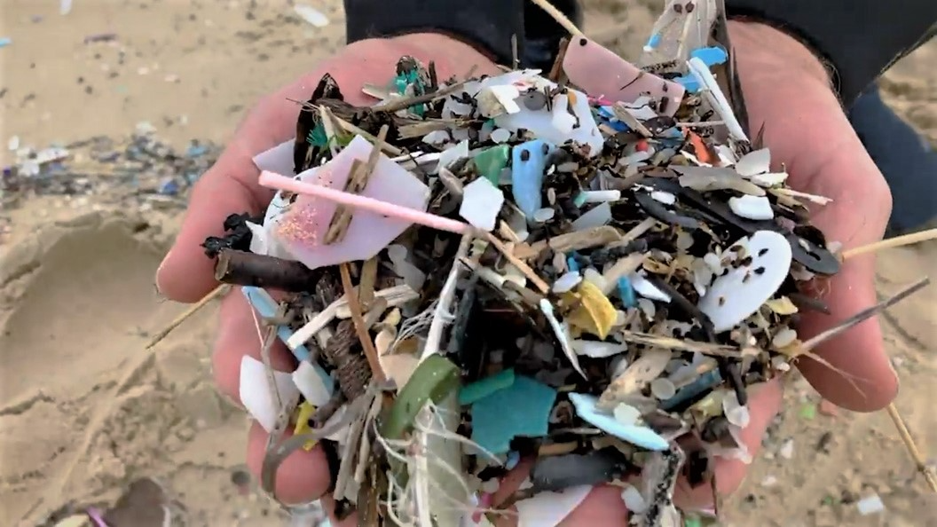 met en scène la carcasse d’un cachalot prise d’assaut par
