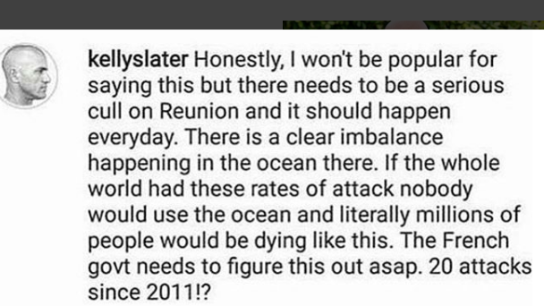 Le message de Kelly Slater appelant à un prélèvement de requins à la Réunion a causé de nombreuses réactions, dont des levées de