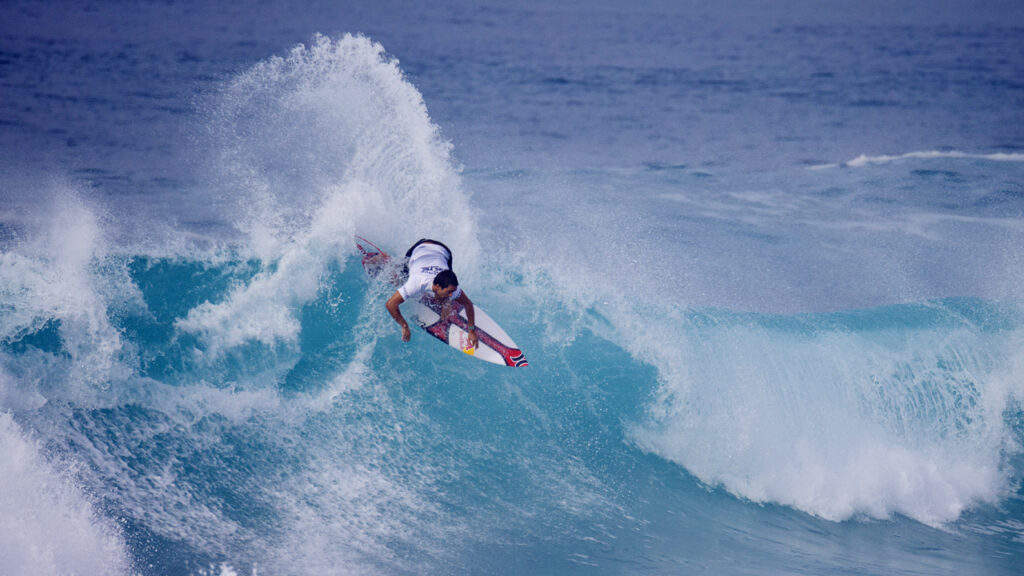 Eli Hanneman, spectaculaire grâce à une série d’aerials, a dominé un plateau relevé comprenant John John Florence, Barron Mamiya et Shion Crawford. Ses notes excellentes (8,67 puis un total de 17,10) lui offrent sa première victoire à Pipeline.