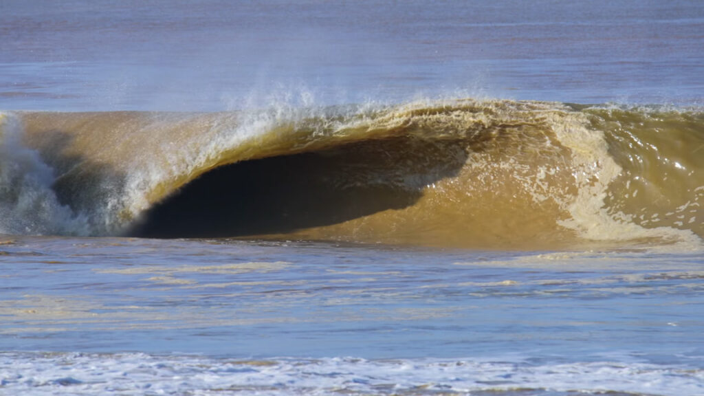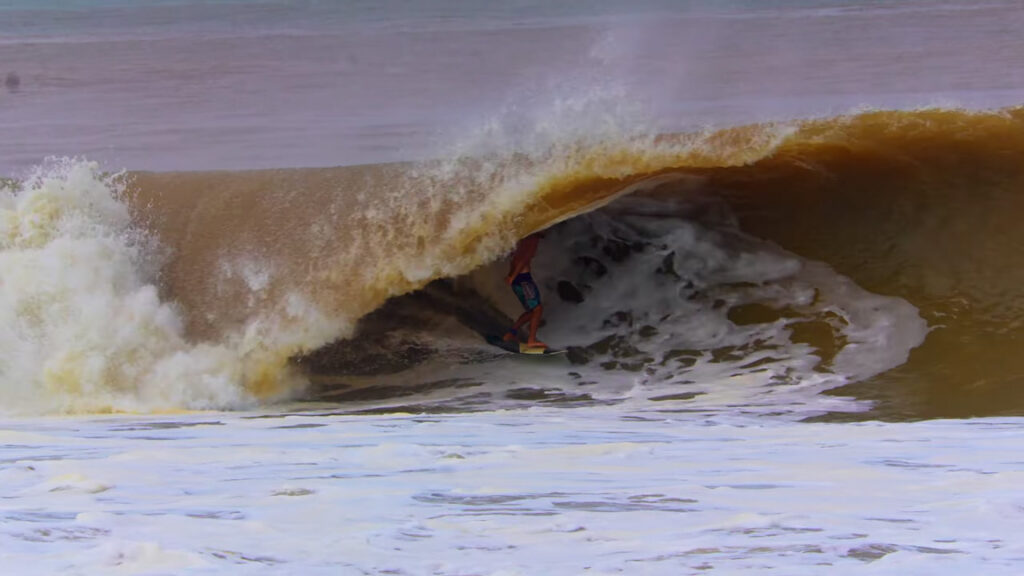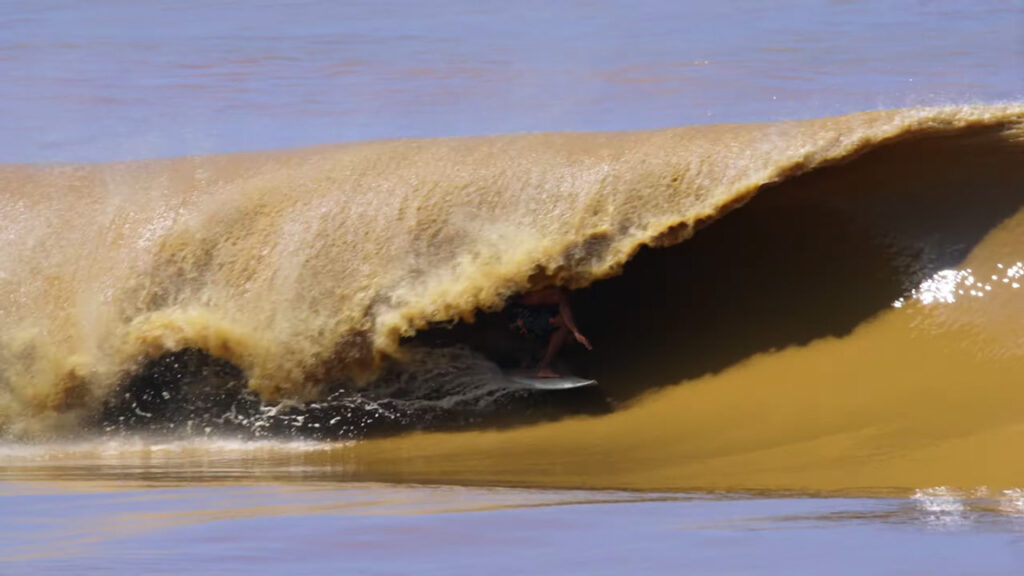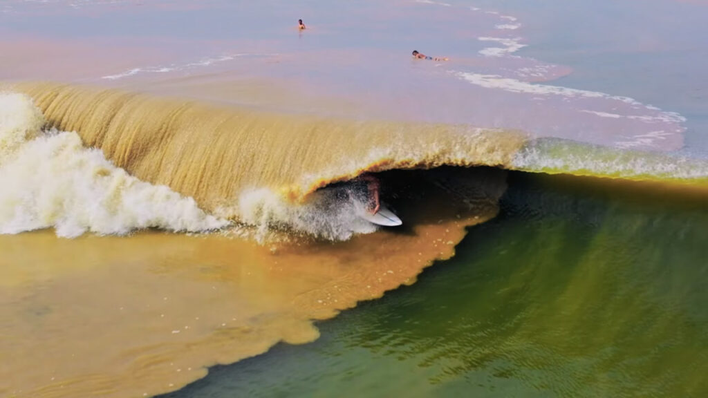 Si Wonka fabriquait une vague, elle ressemblerait certainement à ça : des tubes qui déroulent à toute allure dans une fontaine à chocolat. Sebastian Williams, Christian Corzo, les frères Donnanno et une poignée d’autres surfeurs mexicains étaient invités à l’inauguration organisée après une forte pluie. Ils en sont reparti repus de visions chocolatées, heureux de ne pas avoir trop bu la tasse, et satisfait de ne pas avoir croisé les crocodiles qui peuplent habituellement les lieux…
