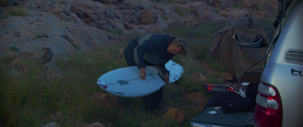Jacob connait bien l’ouest du pays, il habitait à Margaret River pendant son enfance et il passait beaucoup de temps avec sa famille aux alentours de la gauche. À l’époque, ils vivaient déjà dans une caravane, juste devant le spot. On aimerait presque en savoir plus sur leur petit camping sauvage. À bord de leur 4×4 équipé d’une tante de toit, ils peuvent se déplacer partout (ou presque) et s’installer rapidement pour dormir. Il semblerait qu’ils soient restés plusieurs jours sur place, puisque la taille a quasiment doublé. Un trip qui colle parfaitement avec son sponsor majeur à savoir Rip Curl, pionnier dans les voyages à la recherche de vagues méconnues.