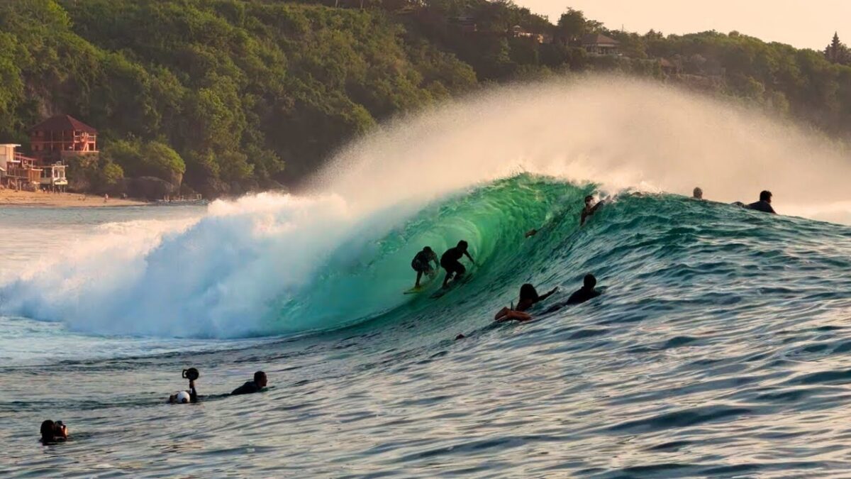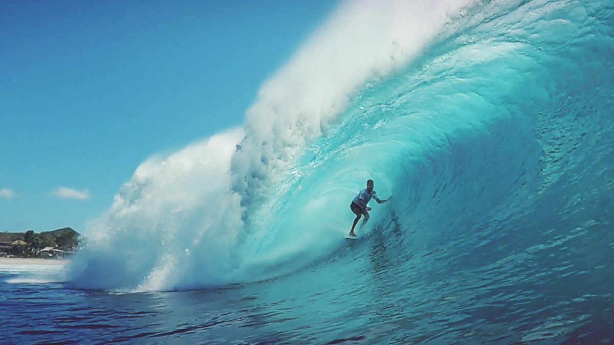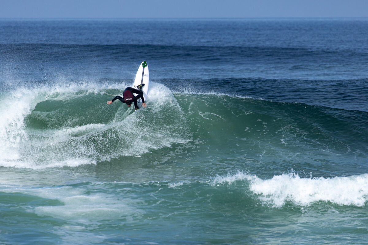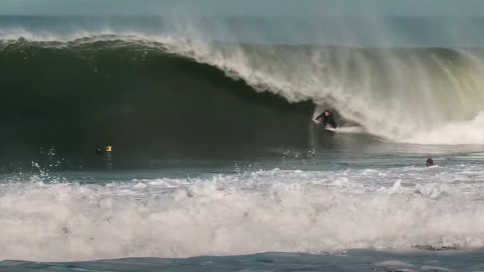 Résultat ? De gros barrels pour les locaux (on en a compté 153 à l’eau) qui ont tenté de s’abriter de la pluie dans les fameux rouleaux du spot.