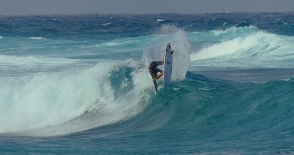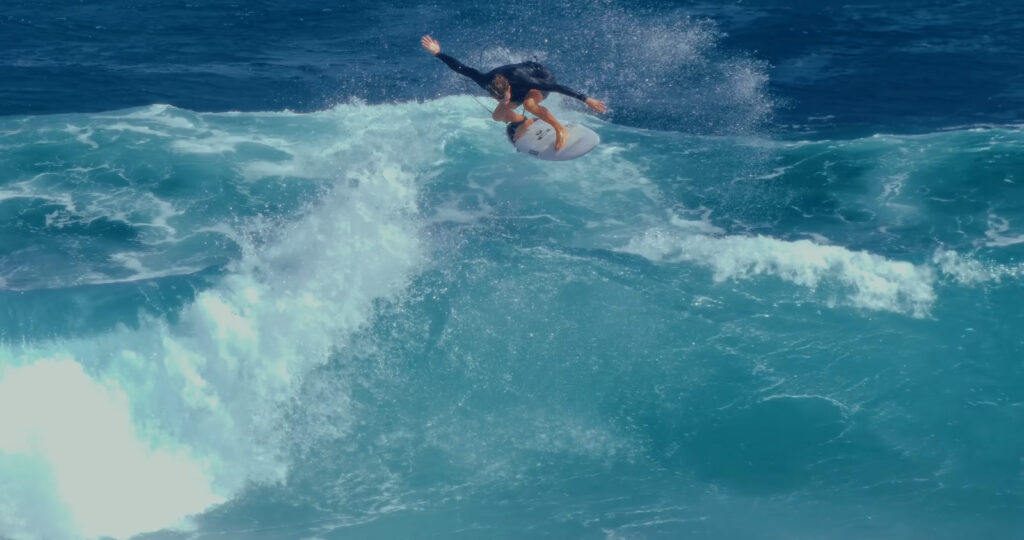 Avant de faire ses débuts sur le CT à l’occasion du Meo Rip Curl Pro Portugal, Gatien Delahaye nous régale non pas avec de « super tubes » mais avec de formidables airs. Ça va très vite, ça monte très haut, les rotations sont hyper-techniques… Et il n’oublie pas d’envoyer du spray sur les sections à carver. Une démonstration de force parfaitement captée par Simon Levalois-Bazer !