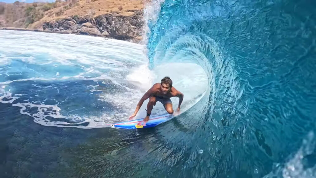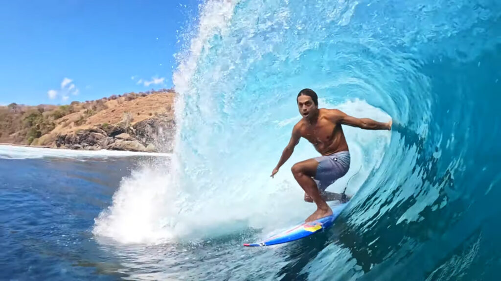Comme plusieurs surfeurs hawaiiens, Kai Lenny profite de la saison off de son archipel natal pour en parcourir un plus riche en vagues à cette période de l’année. C’est donc en Indonésie qu’il a posé son quiver, mais pas question de rester à Bali sans bouger. Cet été Kai Lenny a déjà parcouru plusieurs iles, shapé un shortboard, fait des heures de foil, et décidé de surfer la moitié du temps en switch. Vous n’avez donc pas rêvé, il enquille bien des barrels en goofy comme en regular désormais…