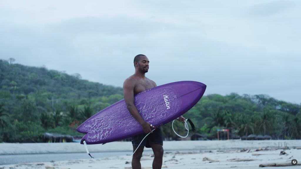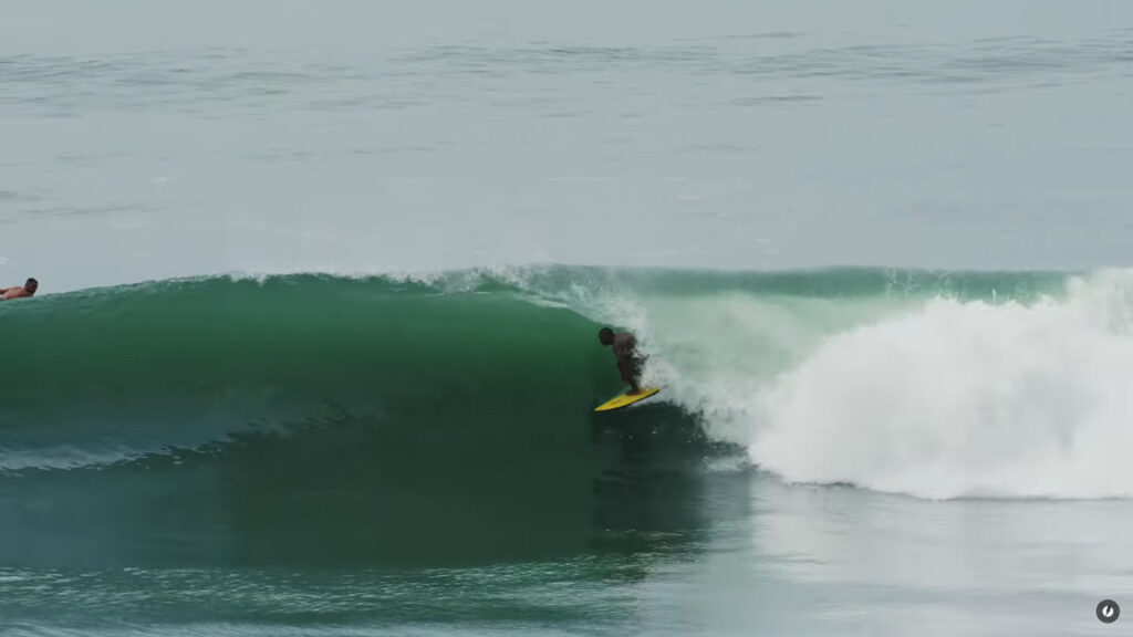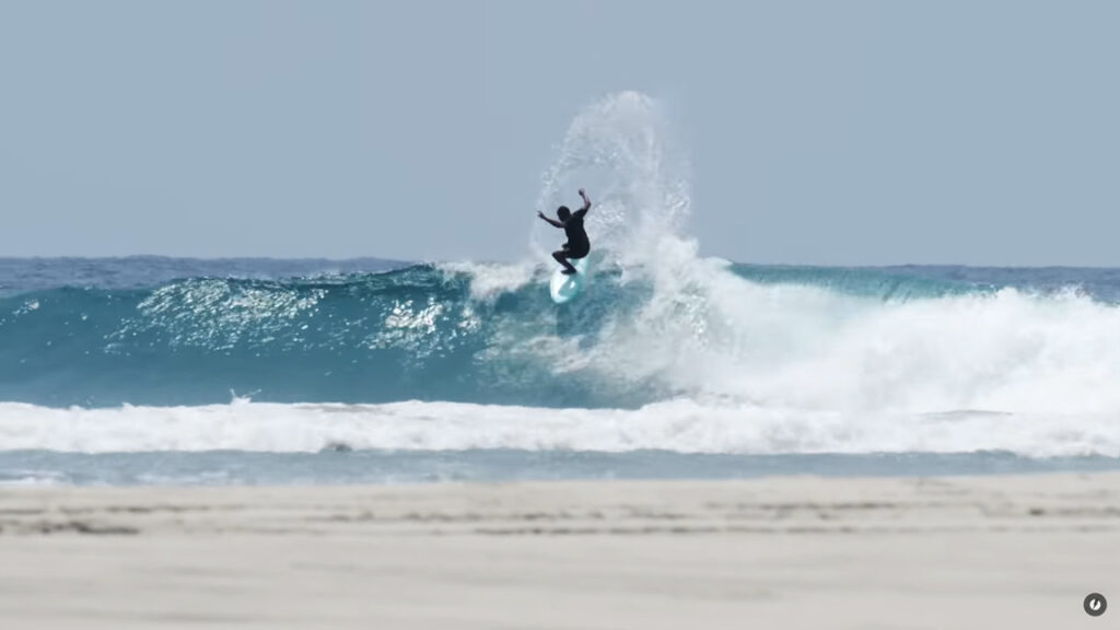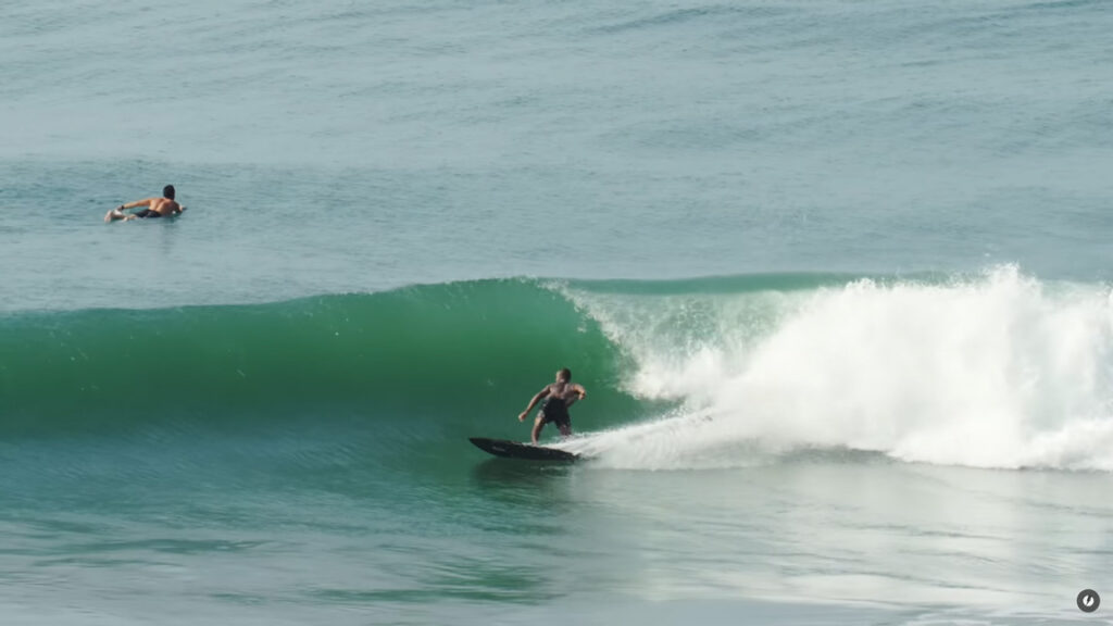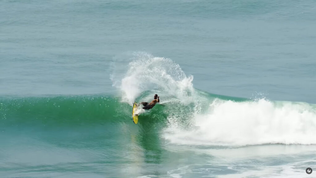 Armé d’un quiver assez diversifié pour s’adapter à toute taille de vague, le brésilien démontre qu’il est tout aussi capable de cruiser sur un twin, tuber sur un quad, ou d’envoyer des airs sur un thuster. Mais toujours sur le rail, et toujours avec un style déconcertant de facilité peut importe la manoeuvre abordée. On peut s’en inspirer !
