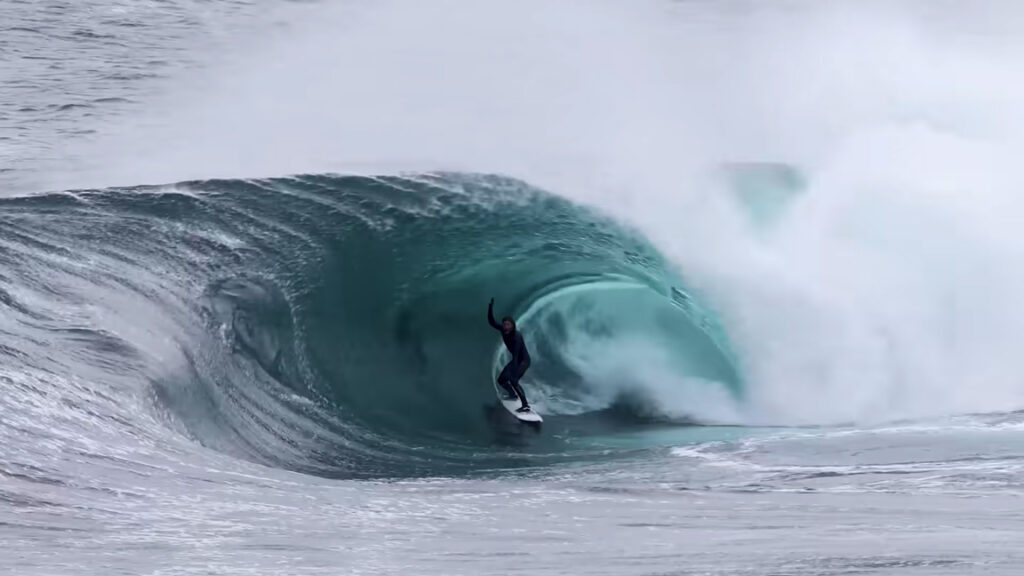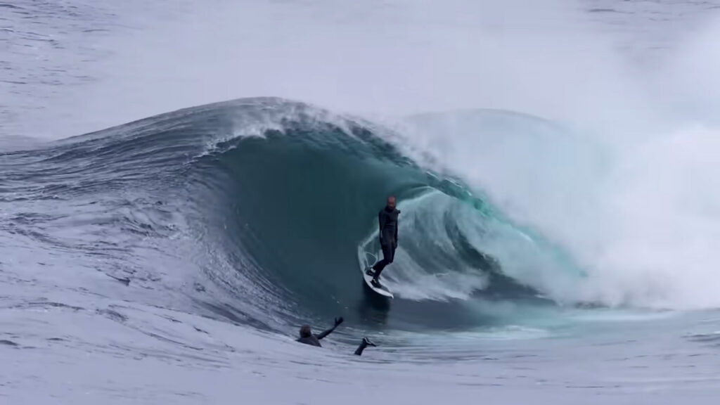 Mise à l’eau craignos, dalle à fleur d’eau, passages involontaires sur les rochers… Mais énormes tubes face à l’offshore ! Le bilan de cette folle session européenne est positif pour Nathan Florence et son frère Ivan, particulièrement brave en backside.