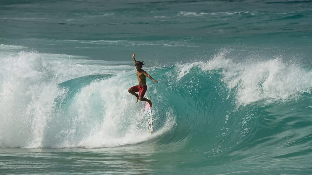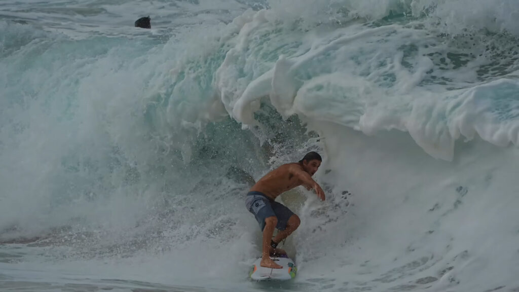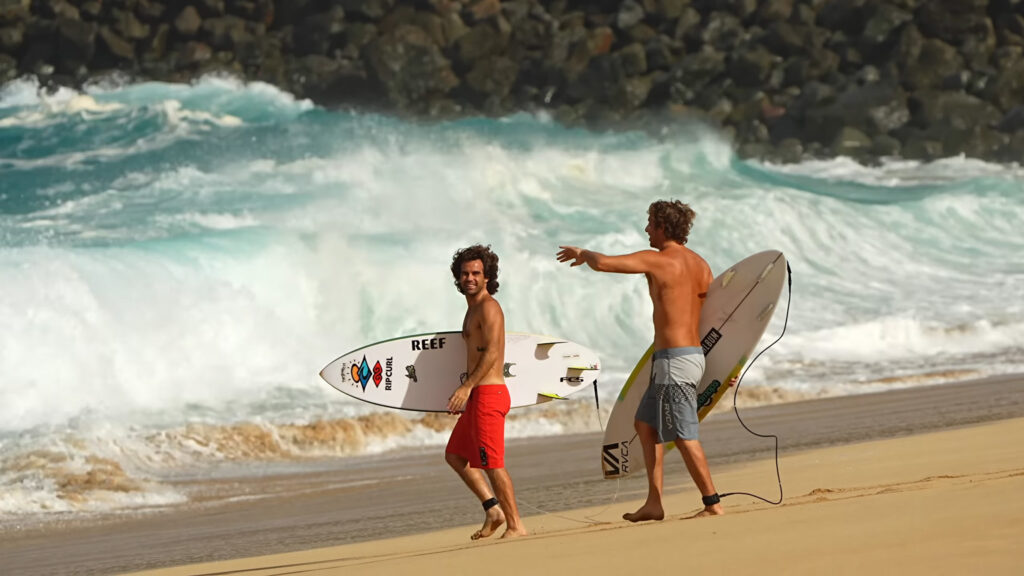 En plus d’un célèbre spot de grosses vagues, Waimea Beach propose une vague de bord plus petite mais tout aussi dangereuse. Les surfeurs préfèrent généralement décliner l’invitation, mais Mason Ho et Clay Marzo ne résistent pas à à l’appel de ce nouveau challenge. Tout deux sont assez talentueux pour gérer quelques bouts grâce à leurs take-off rapides, mais terminent quand même souvent leurs vagues en positions délicates…