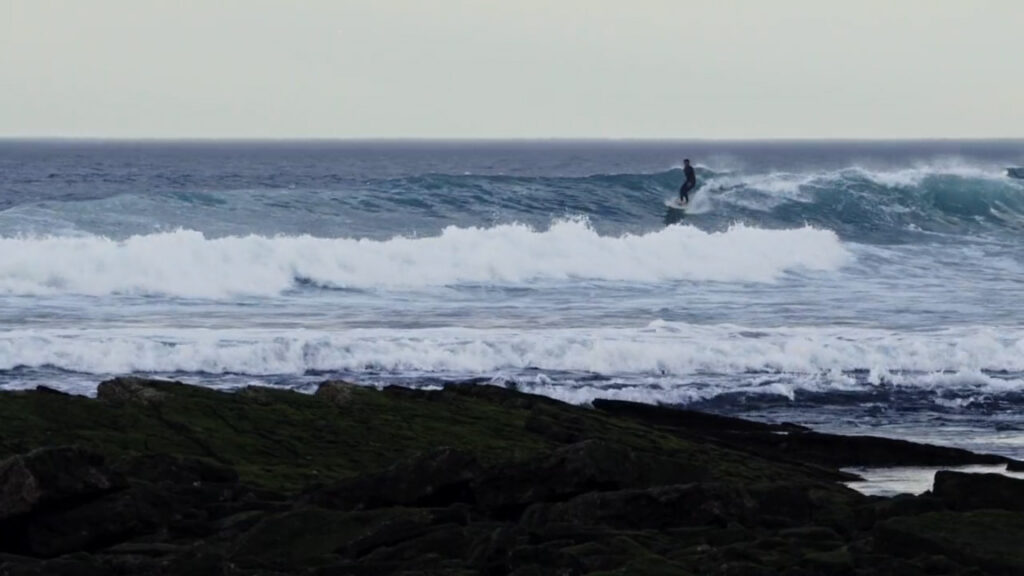 Petites vagues, conditions ventées, spot blindé, nuit qui va tomber… Robin Falxa savait ce qui l’attendait en se pointant sur le pointbreak le plus populaire du 64 un soir de l’été dernier. Cela ne l’a pas empêché d’attraper quelques vagues sur son longboard classique à souhait, et de trouver assez de mur pour quelques noses et cutbacks bien posés. Y’a pire comme façon de regarder le soleil se coucher !