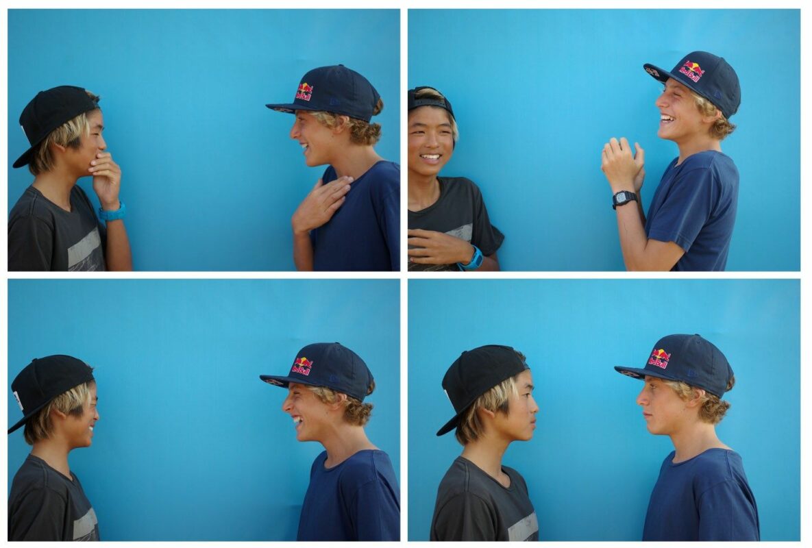 | J’aime la façon dont il me pousse dans les vagues, à surfer de grosses vagues par exemple, ou à faire de gros airs. Et c’est aussi mon meilleur ami, c’est quelqu’un de facile et intelligent. Je me souviens de la première fois où on s’est rencontrés, il était tellement mauvais en anglais. Et maintenant à chaque fois qu’on se croise il fait des progrès impressionnants. C’est marrant à voir. |