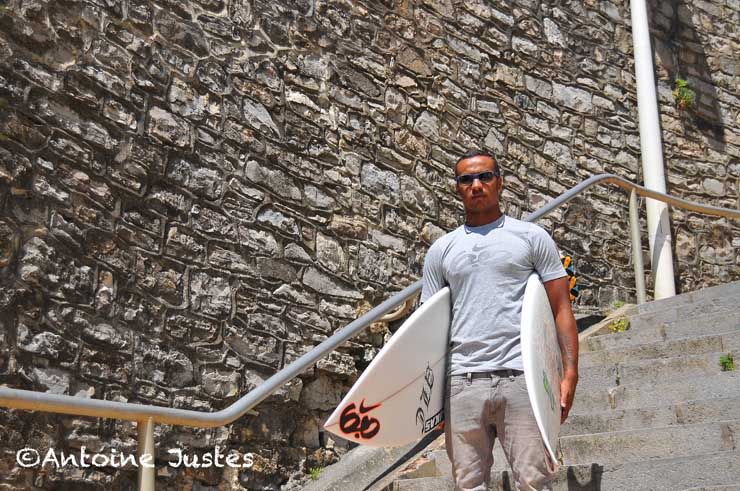 Rencontre sous le soleil avec le freesurfeur biarrot, de passage chez lui entre un trip aux Mentawai et un autre à Tahiti. Chienne de vie...