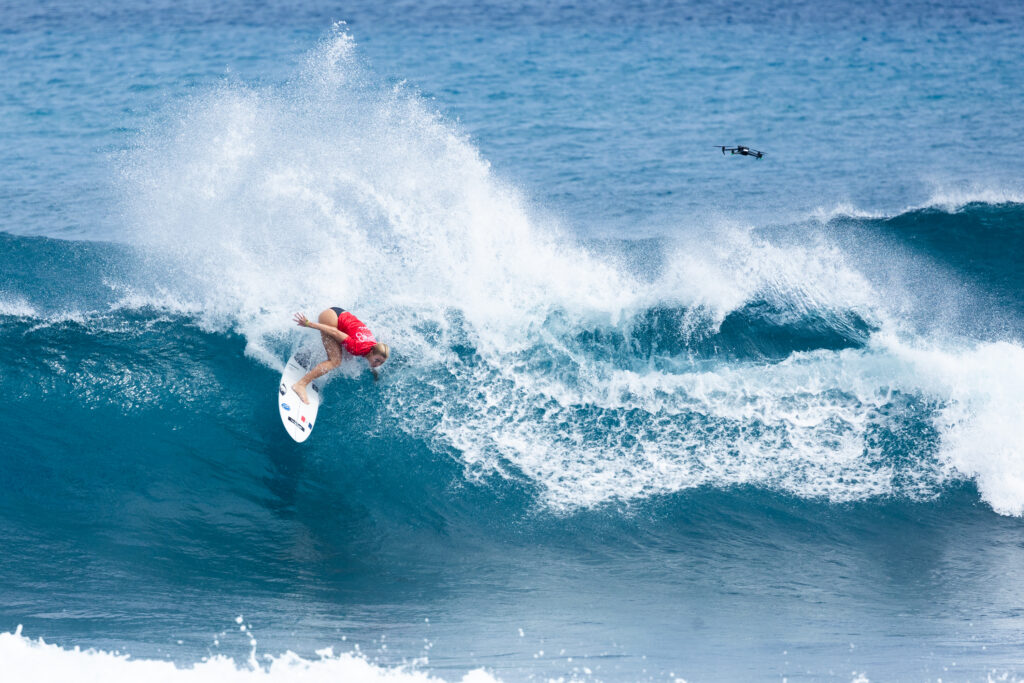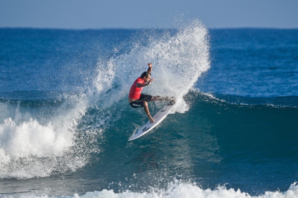 Ce dimanche, Kauli Vaast a signé le deuxième meilleur total de points du jour (14,67 pts), juste derrière le Sud-Africain Jordy Smith (15,27 pts) et devant des pointures comme John John Florence (14,57 pts, Etats-Unis), Ethan Ewing (13,93 pts, Australie) ou encore Yago Dora (13,50 pts, Brésil). Champion du monde ISA en 2021, Joan Duru a eu un peu plus de difficulté à trouver les bonnes vagues sur le spot capricieux d’El Pico, avant de régler la mire et faire la différence en fin de série (12,83 pts). Marco Mignot est lui passé deux fois dans la journée, tôt le matin sur le spot de Margara, puis en début d’après-midi à El Pico. À chaque fois, le jeune français a remporté sa série avec une régularité millimétrée (12,10 pts de total dans les deux séries).