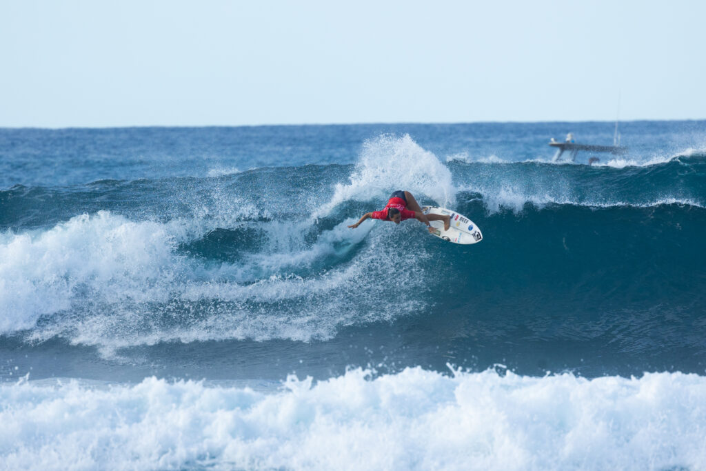 En patronne donc, Johanne Defay est venue conclure la journée et le week-end tricolore. Après avoir enchaîné deux quarts de finale du Championship Tour à Hawaii, la médaillée de bronze de l’édition 2023 des World Surfing Games, a construit son succès tout en maîtrise. Comme Vahine, elle a obtenu la même note proche de l’excellence (7,67 pts) sur une longue droite ponctuée d’un re-entry bien appuyé. Quatrième meilleur total du jour, Defay rejoint ses compatriotes en 8es de finale du tableau principal.