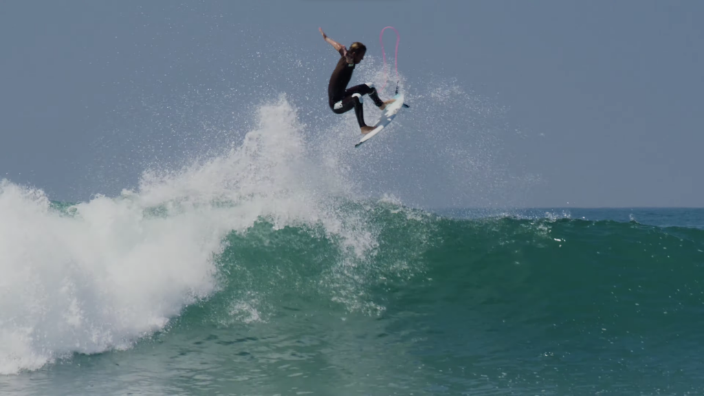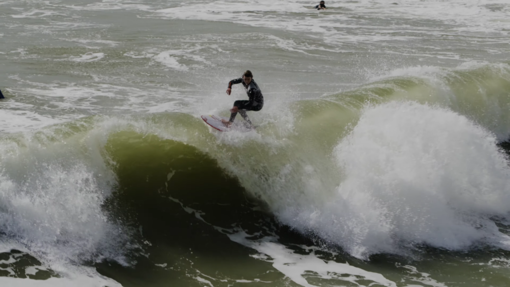 Entre les compétitions et les surf trip, le crew 2% se retrouve souvent éparpillé partout à travers le monde. Mais les protagonistes sont ici de retour en Californie. Accueil triomphal sur San Clemente pour Griffin Colapinto et tous les autres. Au delà des trompettes de l’hymne national américain, ils ont bien été reçus par Dame Nature. De bonnes sections à air se sont notamment déployées devant eux dans les eaux marrons de la région lorsqu’une tempête secouait quelque peu la côte. Côté réalisation, on profite d’un point de vue en hauteur comme celui choisi par le vidéaste de la bande, Jacob Vanderwork, posé en haut du pier. Ce type de digue qui s’avance dans l’océan sur de nombreuses plages américaines et anglaises, offre souvent de quoi surfer un peu à l’abri, lorsque le vent souffle trop pour les plages exposées.