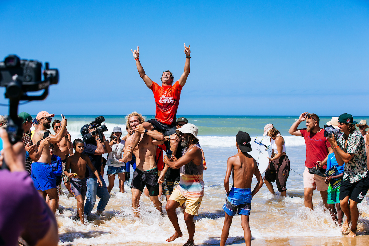 Tiago Carrique et Leo Paul Etienne, aussi explosifs l’un que l’autre, se sont rencontrés en finale hier, dans une bataille 100% française. Si tous deux avaient lâché des airs au cours des jours précédents, ils n’ont cependant pas réussi à trouver les sections adéquates ce dimanche. Avec seulement un gros score au compteur chacun, la pression était à son maximum jusque dans les dernières secondes de leur série. Leo Paul Etienne était en tête et Tiago Carrique a eu une dernière opportunité avant la fin mais il n’a pas réussi à rester sur sa planche, permettant à Leo Paul de regagner la plage victorieux. Le surfeur guadeloupéen n’avait encore jamais dépassé les quarts de finale jusqu’à hier, où il a réussi à faire de sa première finale sur un QS une victoire.