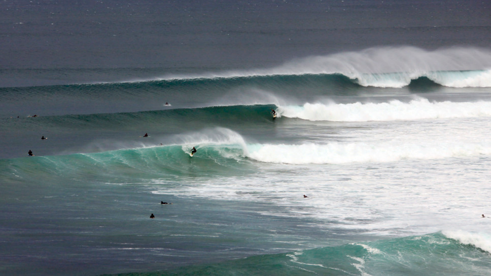 Pour rejoindre le line-up, plusieurs options, entre une mise à l’eau directe au pic depuis le plateau rocheux par petite et moyenne taille, ou depuis la droite, via l’extrémité nord-est de Bells, pour contourner la mini-pointe. Attention toutefois au Button, ce bloc de roche semi-immergé où viennent se fracasser les séries. Deux sections se détachent : Uppers et Lowers, pas besoin de vous faire un dessin.