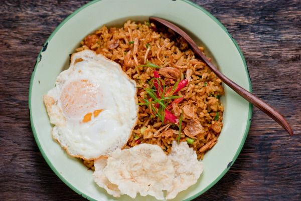 Il n’existe pas un mais des centaines de nasi goreng. Ce qui signifie “riz frit” est une base malléable à laquelle on peut intégrer les ingrédients de son choix : porc, poulet, poisson, saucisse, oeuf, légumes et piments à gogo. Le seul point commun demeure l’utilisation de sauce soja sucrée qui vient équilibrer la saveur fortement épicée.