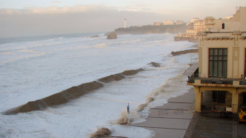 Régulièrement balayée chaque hiver par de nombreuses tempêtes, le littoral de la ville de Biarritz se fragilise. C’est pourquoi la Mairie a mis en place un système anti vagues submersion qu’il vous est possible de retrouver ici en détails.