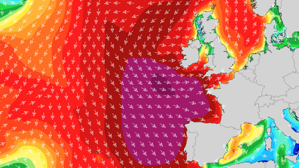 Une houle de 6 à 8 mètres est en effet attendue. Combiné à une période de 14 secondes et un fort vent d’ouest, le littoral devrait offrir un beau spectacle dans les heures qui arrivent. Heureusement, les petits coefficients (47 et 48) réduisent sérieusement le risque de « vagues submersions ».