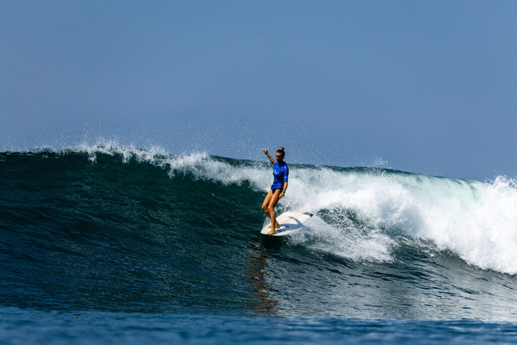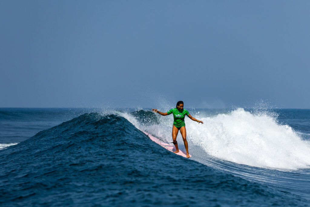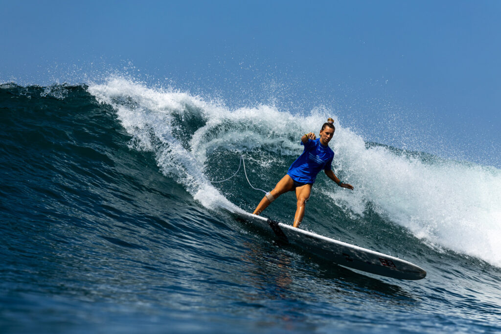 Au round 6 des repêchages, Alice Lemoigne s’est brillamment imposée dans sa série face à Maria Fernanda Reyes, la Mexicaine Coral Bonilla et l’Américano-Samoane Sive Jarrard. Si la Péruvienne a mené la série sur la longueur, la championne du monde ISA 2023 ne s’est pas démontée et a attendu son opportunité. C’est dans la dernière minute du heat qu’elle a scoré sa seconde vague et pas des moindres : un 9.80 points sur une longue droite où elle a démontré avec aisance l’ampleur de son répertoire. Alice Lemoigne detient ainsi les deux meilleures notes de la compétition cette année, un 9.77 et un 9.80. Malheureusement, la Réunionnaise s’est inclinée au tour suivant (round 7 des repêchages) par manque d’opportunité à l’eau. Elle se classe 8e mondiale lors de ces Mondiaux ISA.