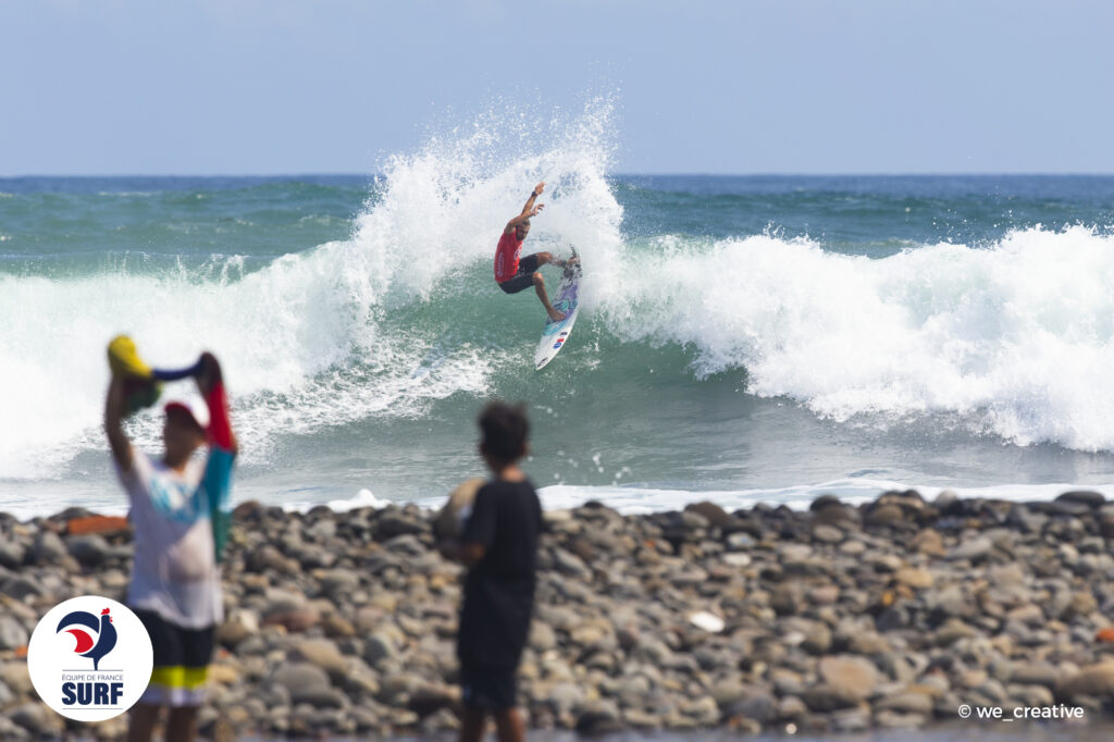 Maxime Huscenot et Kauli Vaast sont sortis du tableau principal messieurs des Championnats du monde ISA, la nuit dernière à Surf City, au Salvador. Les voici donc versés dans les repêchages où Joan Duru a passé trois tours dans la seule journée de dimanche. L’équipe de France se prépare à une journée monumentale aujourd’hui avec potentiellement seize séries à passer en fonction des résultats de ses six surfeurs qui seront tous sur le pont.