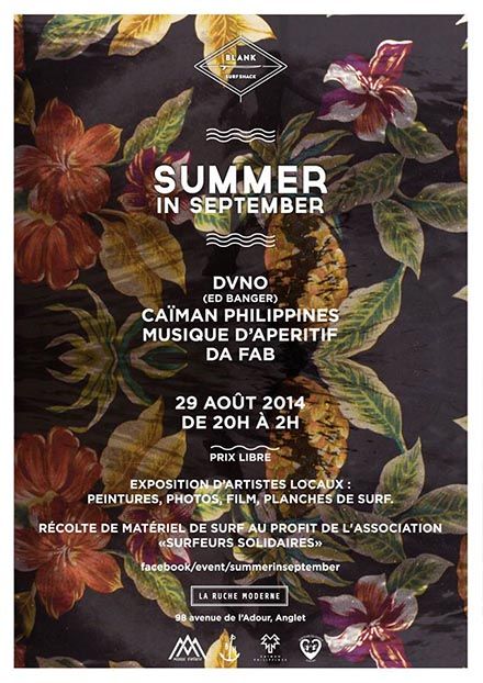 Rendez-vous ce soir à La Ruche Moderne (98 avenue de l’Adour, Anglet) à partir de 20h00 pour la soirée SUMMER IN SEPTEMBER.