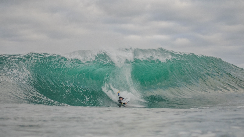 Rien que cette idée donnait des frissons au jeune Ethan, qui s’en tenait aux beachbreaks, pour être honnête. Son père, Nicolas, a pris les choses en main, en se référant à un rituel médiéval français. Il a baigné son fils dans le sang de son père pour puiser dans la force et la témérité de leurs ancêtres. Et il a puisé ces énergies. Ethan est le nouveau prince du boogie en Europe, et le sang ne manquera pas de couler sur son chemin vers le trône. »