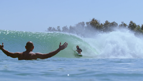 Quand certains pères emmènent leur fils se promener ou au ciné, d’autres se rendent sur l’un des endroits les plus convoités du moment sur la planète surf. L’espace d’un après-midi, Shane Dorian et son fils Jackson ont pu profiter en famille de cette vague parfaite. « Je suis tellement content d’avoir eu cette opportunité et en plus d’avoir pu la partager avec mon fils. Je viens juste de le voir prendre la plus belle vague de sa vie ». Pour sa première fois dans une piscine à vagues, le surfeur de gros est comblé : « Ça a dépassé toutes mes espérances« .
