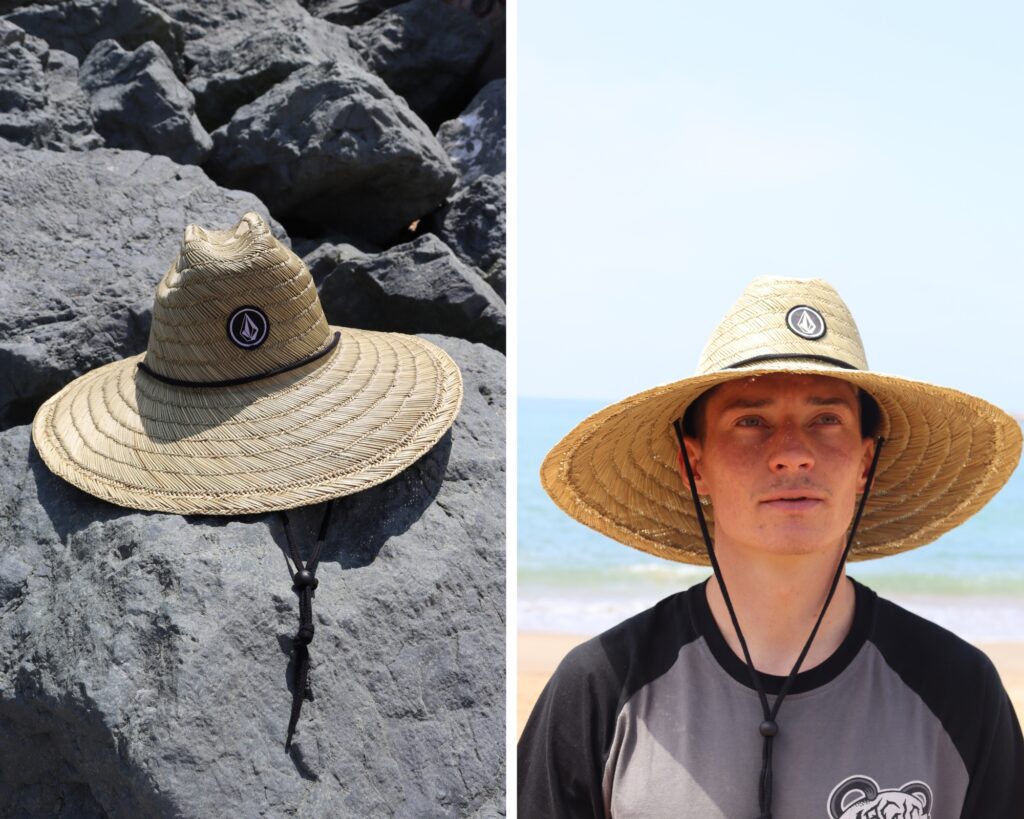 Un chapeau de paille de haut niveau. C’est finalement la phrase qui résumera le mieux cette pièce. Si vous l’avez vu vissé sur la tête de différents photographes ou vidéastes installés sur les plages pour immortaliser vos sessions, ce n’est pas pour rien ! Avec ses bords larges et plats, il offre la protection optimale contre le soleil et ses dangers. Sa matière en paille tressée forme une barrière efficace pour mettre votre visage et votre nuque à l’ombre, tandis qu’à l’intérieur la bande anti-transpiration apporte du confort et évite trop de marques sur le haut du front. Le cordon de serrage joue sur le style mais aussi la praticité. En cas de vent plus fort, il est possible de le resserrer sur le visage : un brin moins stylé sur le look mais bien utile. Petit plus pour l’écusson tissé à l’avant, qui lui apporte un certain cachet. Deux tours de tête sont disponibles à l’achat. Pour notre part, nous avons testé le modèle L/XL (60cm de tour de tête), plus adapté aux têtes masculines de l’équipe. On recommandera le modèle S/M (58cm) pour les plus petites têtes, afin qu’il ne tombe pas sur les yeux.