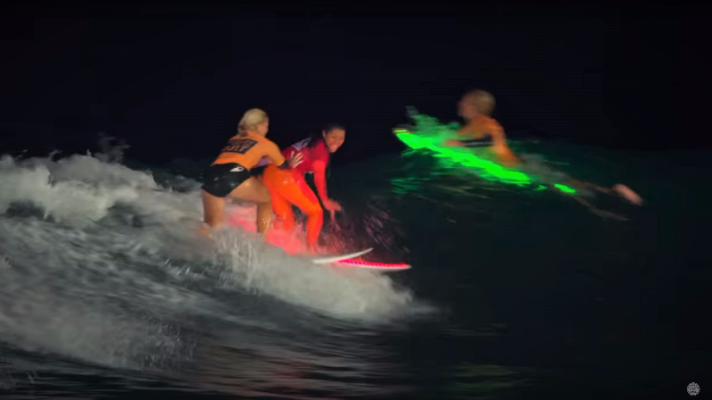 Sur leurs planches équipées de LED, les surfeurs se sont départagés au cours de 3 séries de 6 surfers. Thomas Debierre s’est imposé chez les jeunes, Pauline Ado a taillé les vagues comme personne en catégorie féminine, et Vincent Duvignac a dominé le coté hommes avec un air reverse bien envoyé.